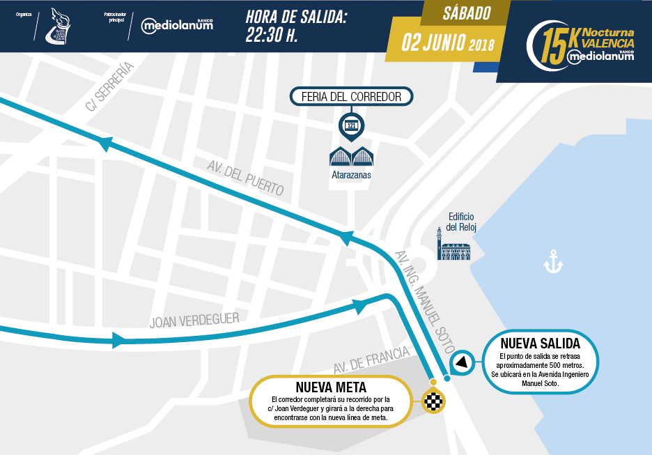 Por otro lado, con la intención de impulsar el valor de esta carrera única, que tiene la particularidad de ofrecer un recorrido nocturno lleno de magia por las principales calles de Valencia, ha cuidado todo al detalle para que el corredor disfrute de ella de principio a fin. Es por esto que se han modificado los puntos de salida y llegada. El objetivo no es otro que el de acotar en un mismo punto el inicio y el fin de la misma, para facilitar así el acceso a la zona de cajones de los corredores y agilizar el control de los cortes de tráfico. Con esta novedad organizativa, que supone una mejora logística, la 15K Nocturna Valencia Banco Mediolanum optimizará la espectacularidad de su circuito, que seguirá estando homologado por la RFEA.