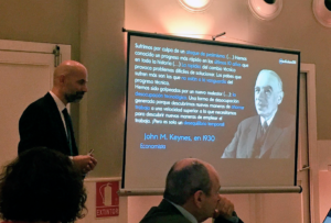 Como introducción, explicó la evolución de la banca y la fluctuación del desarrollo económico mundial, clave en el avance tecnológico: “Vamos hacia un mundo convergente, en el que mejoran la salud de las personas y el bienestar. Esto aumentará el desarrollo”. Y es que, según palabras del propio Luca: “Nuestro cerebro no está preparado para tanto cambio rápido, pero nos tenemos que acostumbrar a la rapidez, porque el cambio de mañana se hará a una velocidad mucho mayor”.
